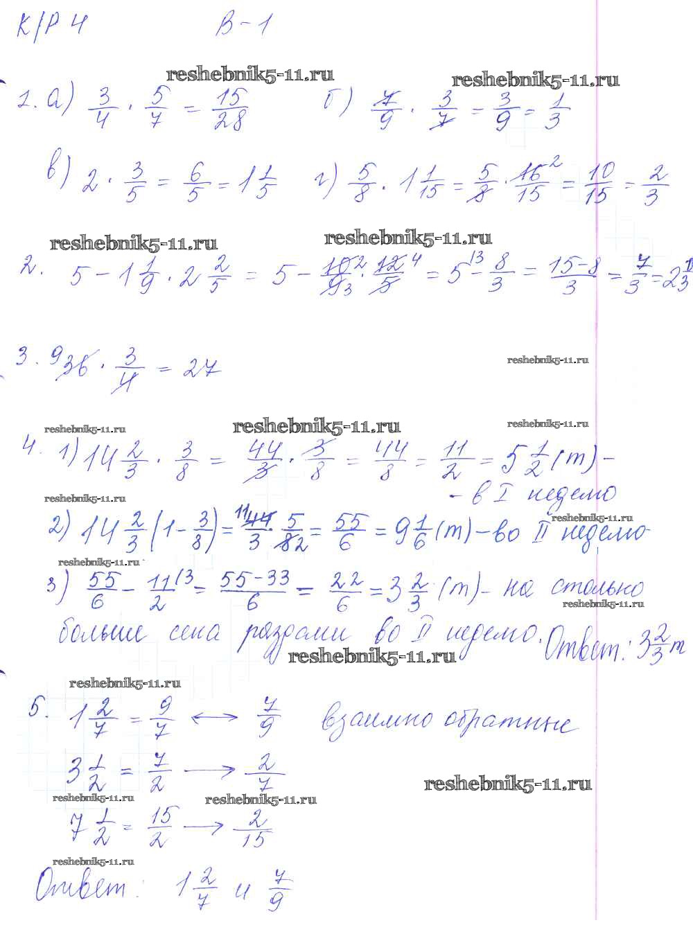 Готовая домашняя работа с ответами по Математике за 6 класс Дудницын, Кронгауз Контрольные работы УМК Экзамен 2013 ФГОС - КР-4. Варианты 1