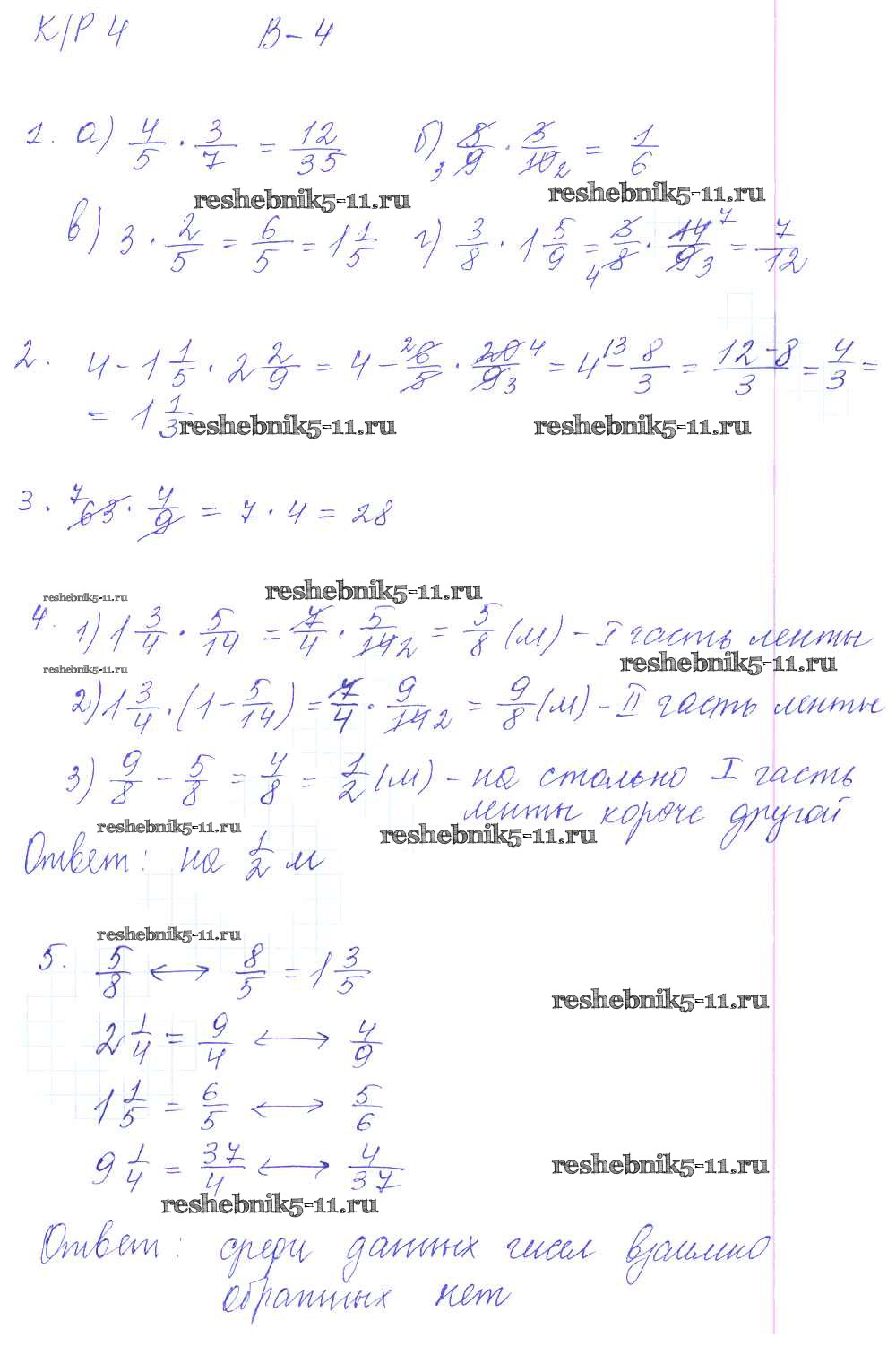 Готовая домашняя работа с ответами по Математике за 6 класс Дудницын, Кронгауз Контрольные работы УМК Экзамен 2013 ФГОС - КР-4. Варианты 4