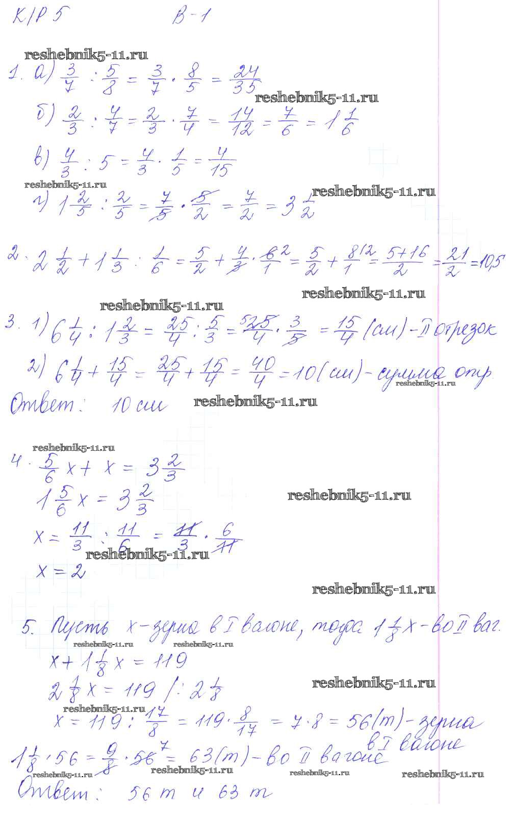Готовая домашняя работа с ответами по Математике за 6 класс Дудницын, Кронгауз Контрольные работы УМК Экзамен 2013 ФГОС - КР-5. Варианты 1