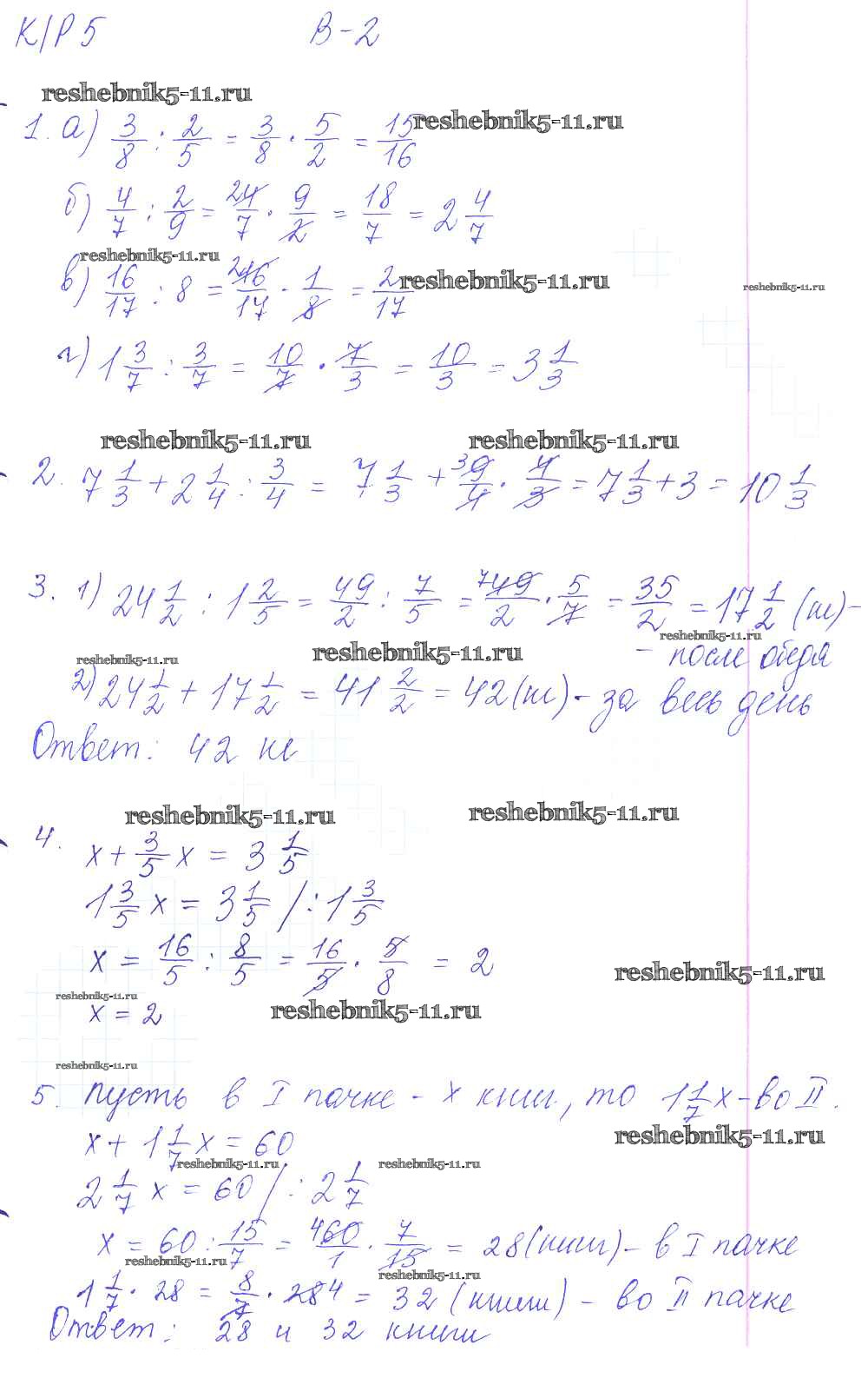 Готовая домашняя работа с ответами по Математике за 6 класс Дудницын, Кронгауз Контрольные работы УМК Экзамен 2013 ФГОС - КР-5. Варианты 2