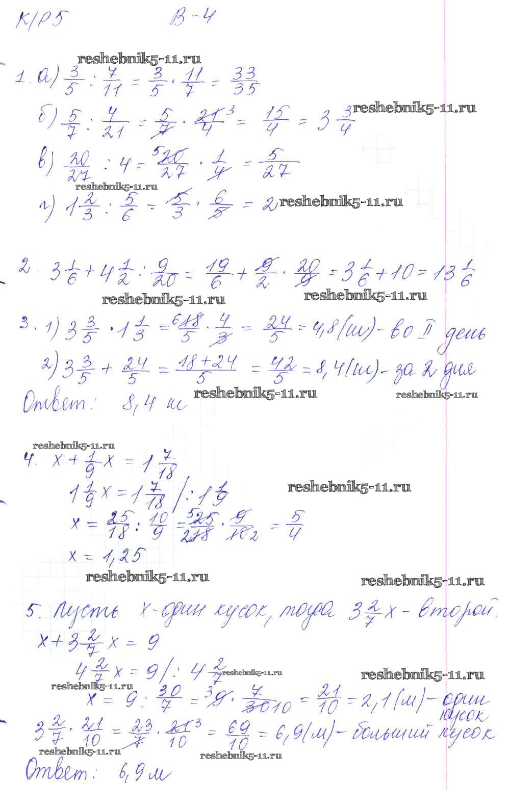 Готовая домашняя работа с ответами по Математике за 6 класс Дудницын, Кронгауз Контрольные работы УМК Экзамен 2013 ФГОС - КР-5. Варианты 4