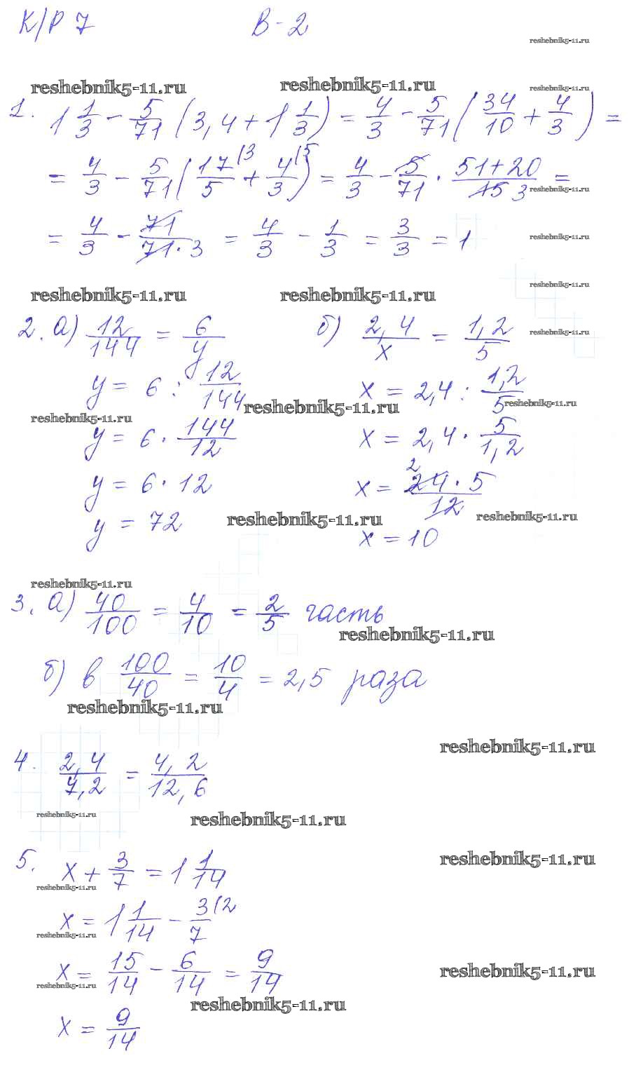 Готовая домашняя работа с ответами по Математике за 6 класс Дудницын, Кронгауз Контрольные работы УМК Экзамен 2013 ФГОС - КР-7. Варианты 2