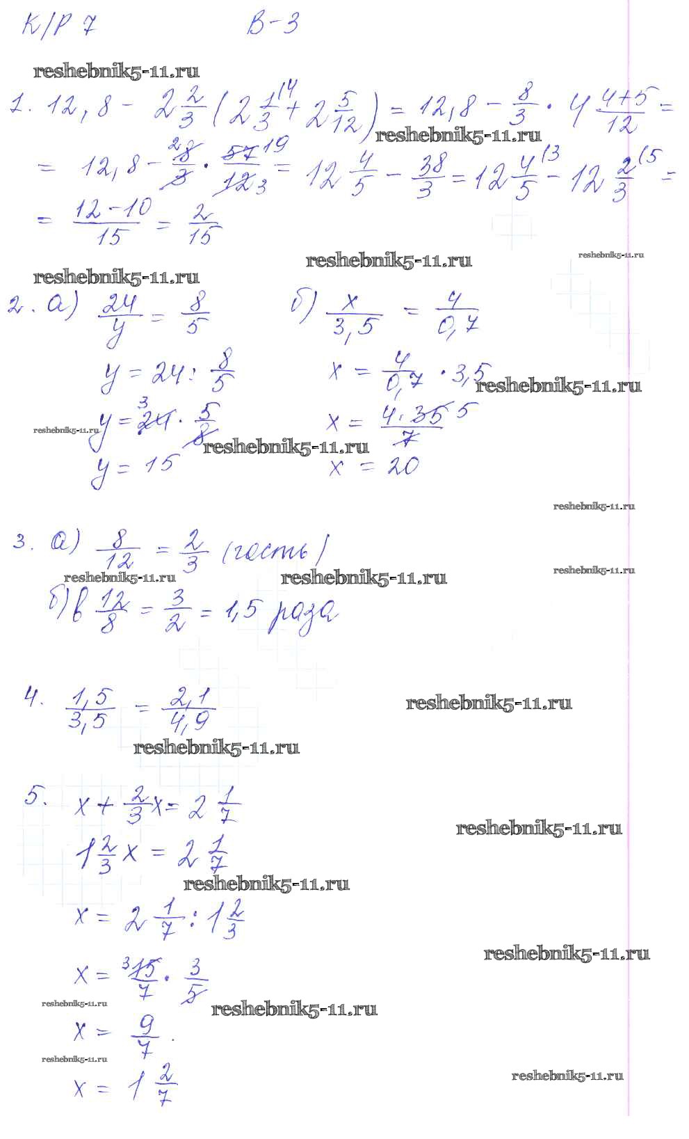 Готовая домашняя работа с ответами по Математике за 6 класс Дудницын, Кронгауз Контрольные работы УМК Экзамен 2013 ФГОС - КР-7. Варианты 3