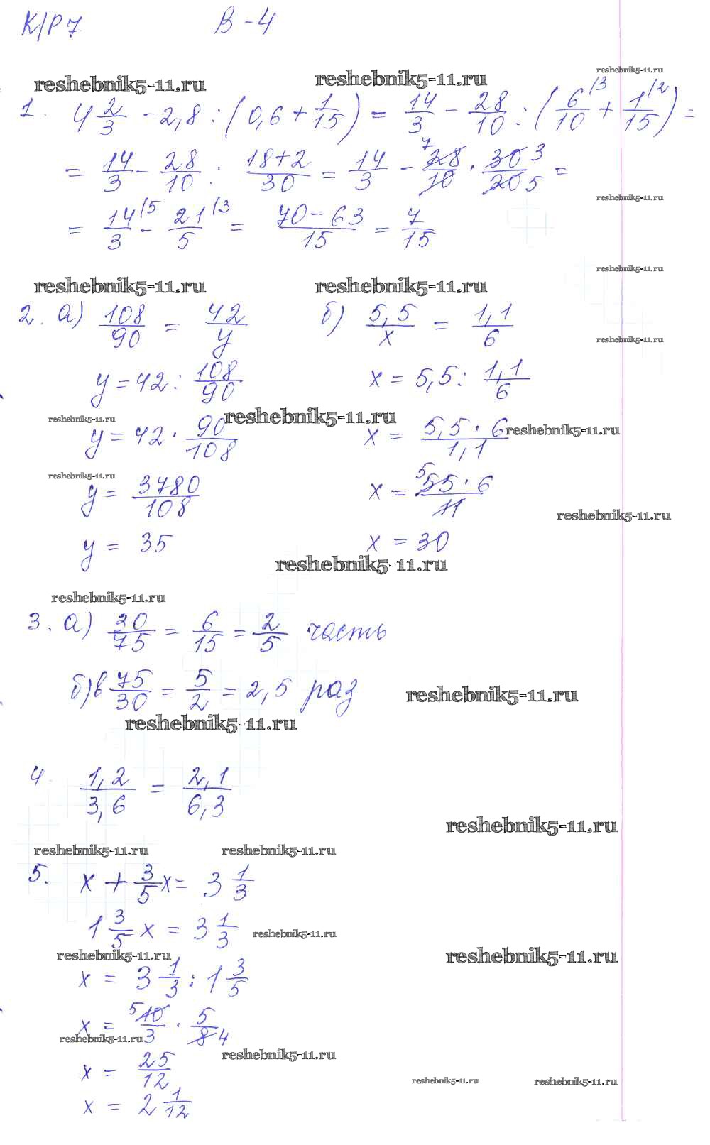 Готовая домашняя работа с ответами по Математике за 6 класс Дудницын, Кронгауз Контрольные работы УМК Экзамен 2013 ФГОС - КР-7. Варианты 4