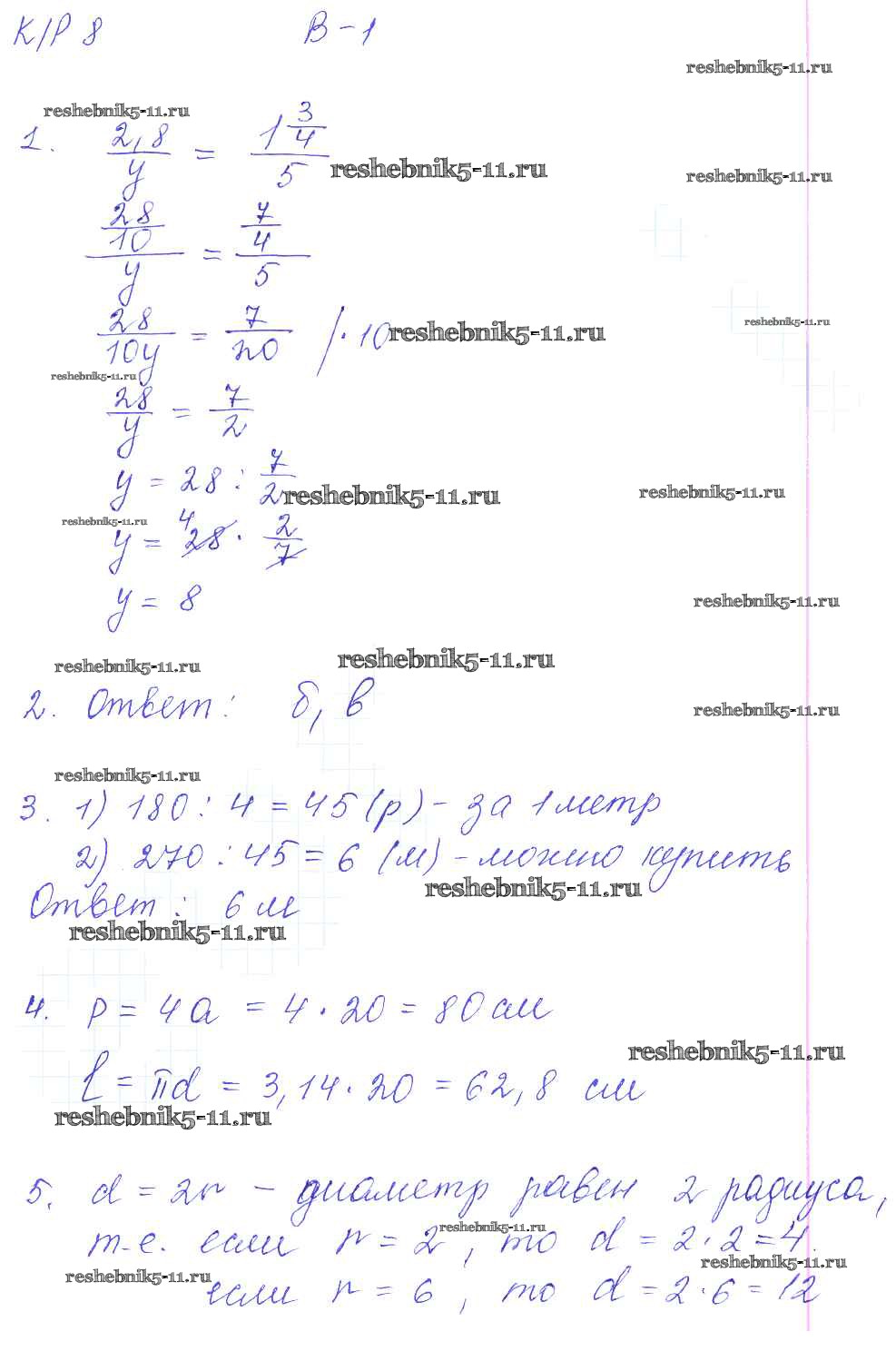 Готовая домашняя работа с ответами по Математике за 6 класс Дудницын, Кронгауз Контрольные работы УМК Экзамен 2013 ФГОС - КР-8. Варианты 1