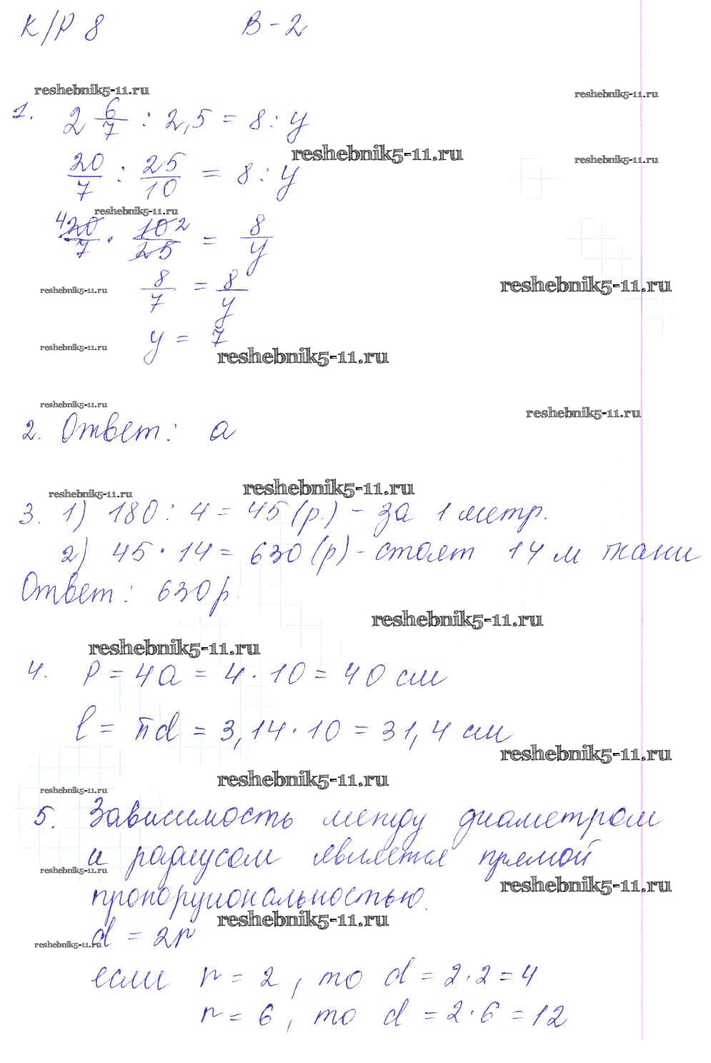 Готовая домашняя работа с ответами по Математике за 6 класс Дудницын, Кронгауз Контрольные работы УМК Экзамен 2013 ФГОС - КР-8. Варианты 2