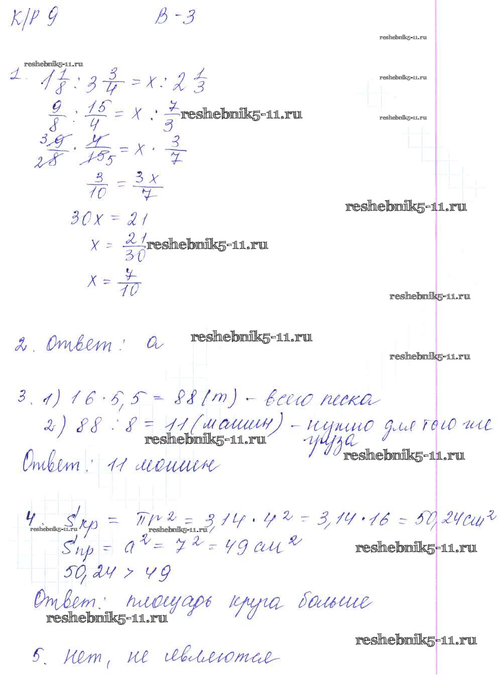 Готовая домашняя работа с ответами по Математике за 6 класс Дудницын, Кронгауз Контрольные работы УМК Экзамен 2013 ФГОС - КР-9. Варианты 3