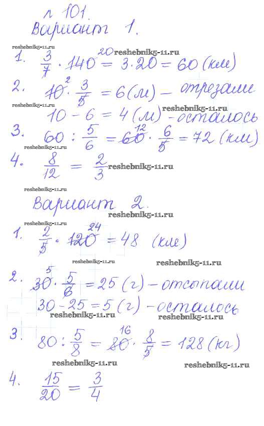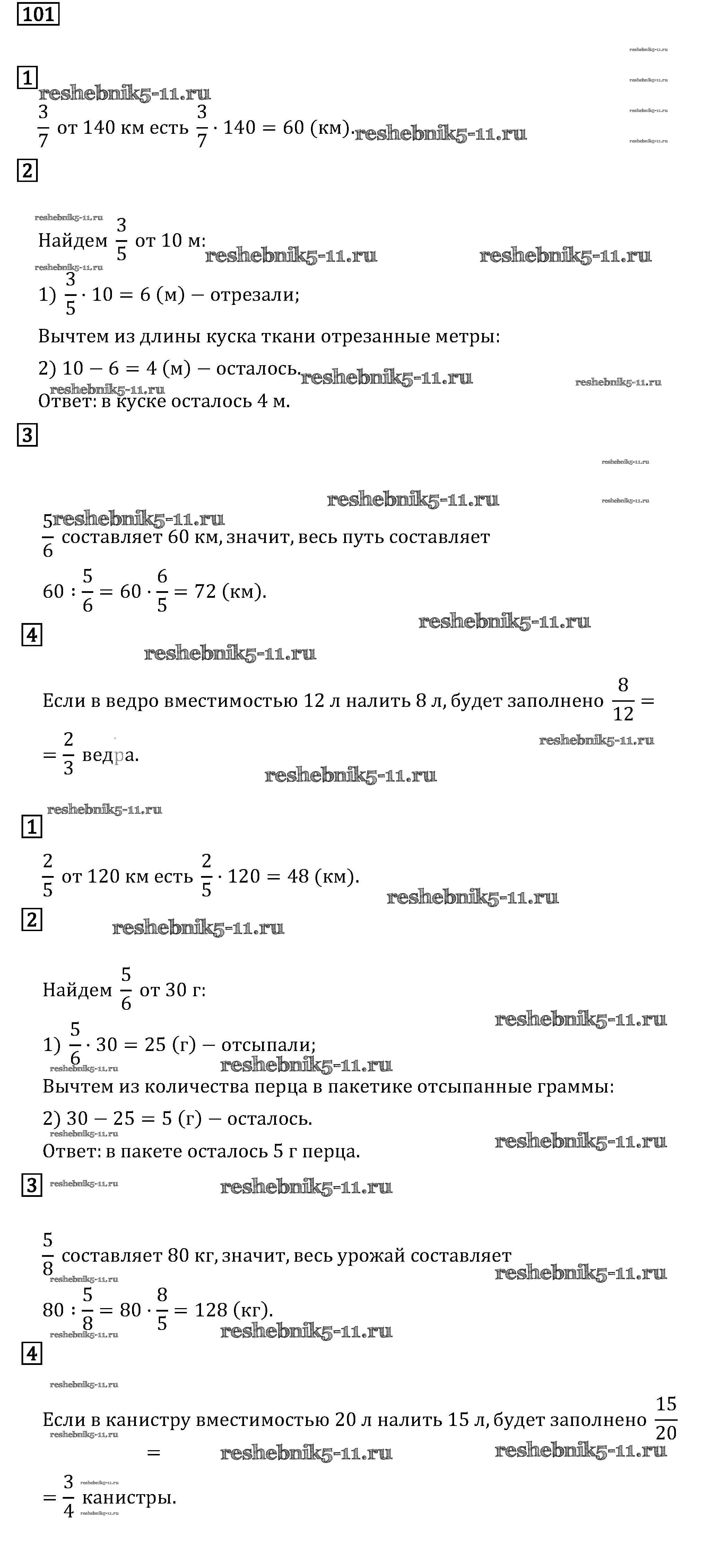 Готовая домашняя работа с ответами по Математике за 6 класс Бунимович, Кузнецова, Минаева Задачник Сферы Часть 1, 2 Просвещение 2014 ФГОС - Упражнения 101