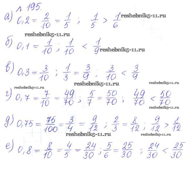 Готовая домашняя работа с ответами по Математике за 6 класс Бунимович, Кузнецова, Минаева Задачник Сферы Часть 1, 2 Просвещение 2014 ФГОС - Упражнения 195