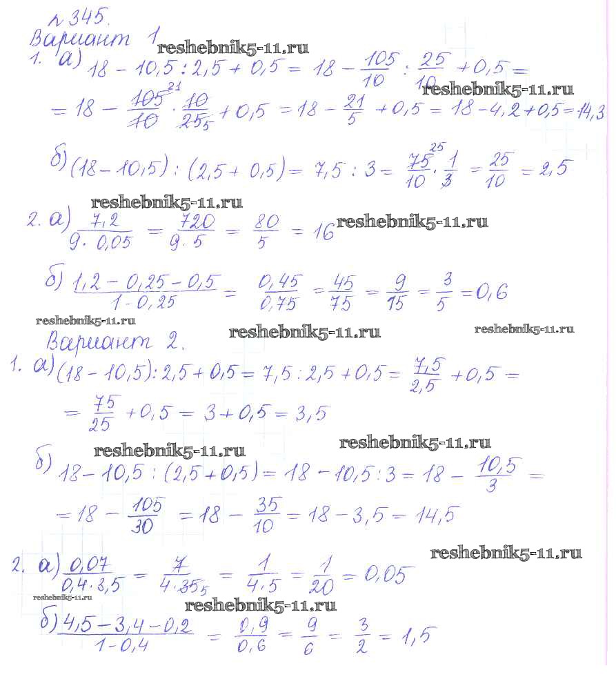 Готовая домашняя работа с ответами по Математике за 6 класс Бунимович, Кузнецова, Минаева Задачник Сферы Часть 1, 2 Просвещение 2014 ФГОС - Упражнения 345