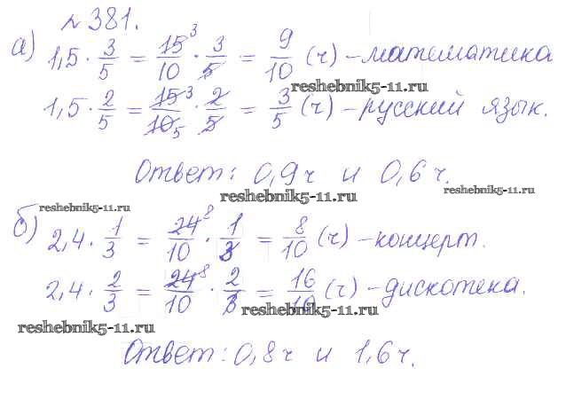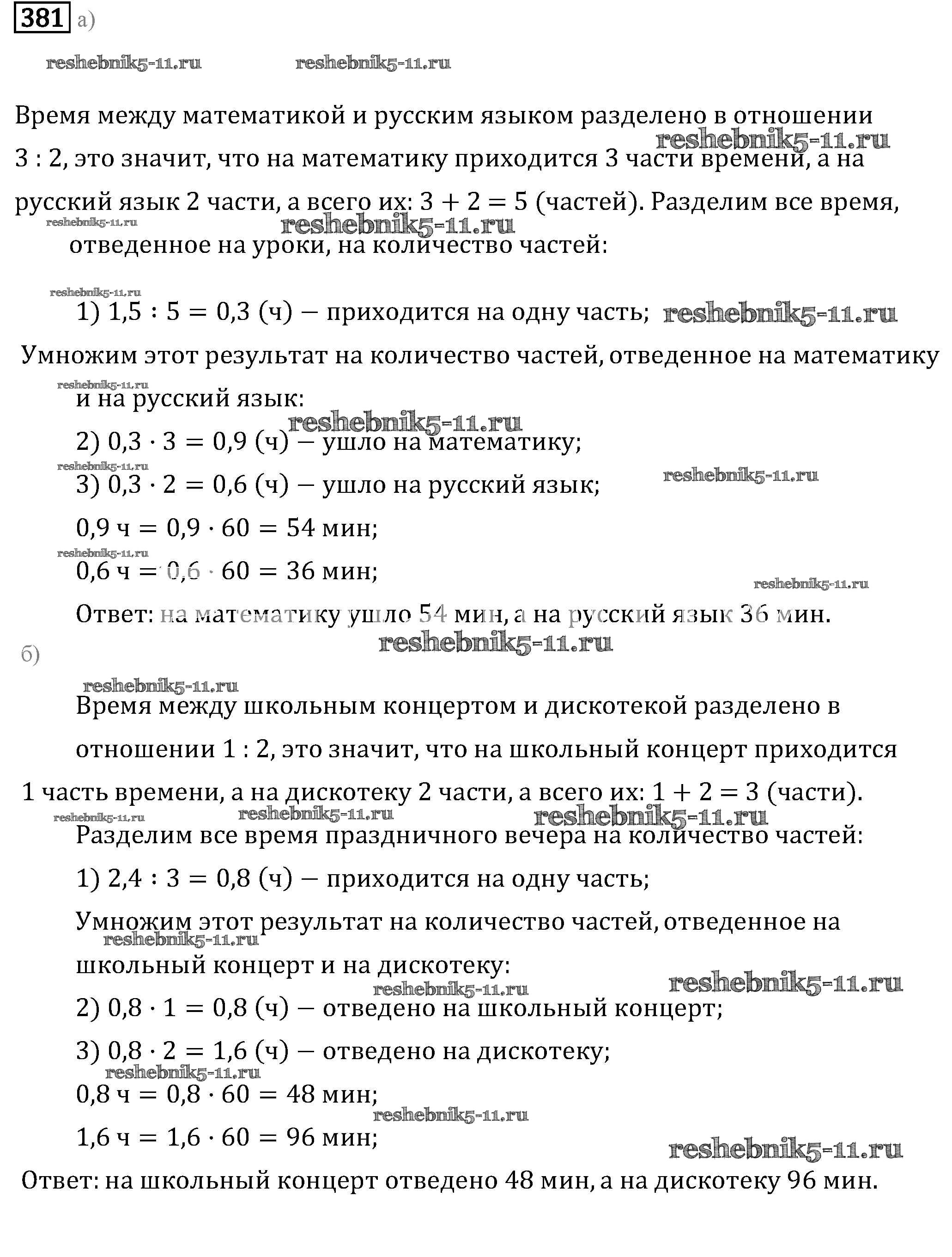 Готовая домашняя работа с ответами по Математике за 6 класс Бунимович, Кузнецова, Минаева Задачник Сферы Часть 1, 2 Просвещение 2014 ФГОС - Упражнения 381