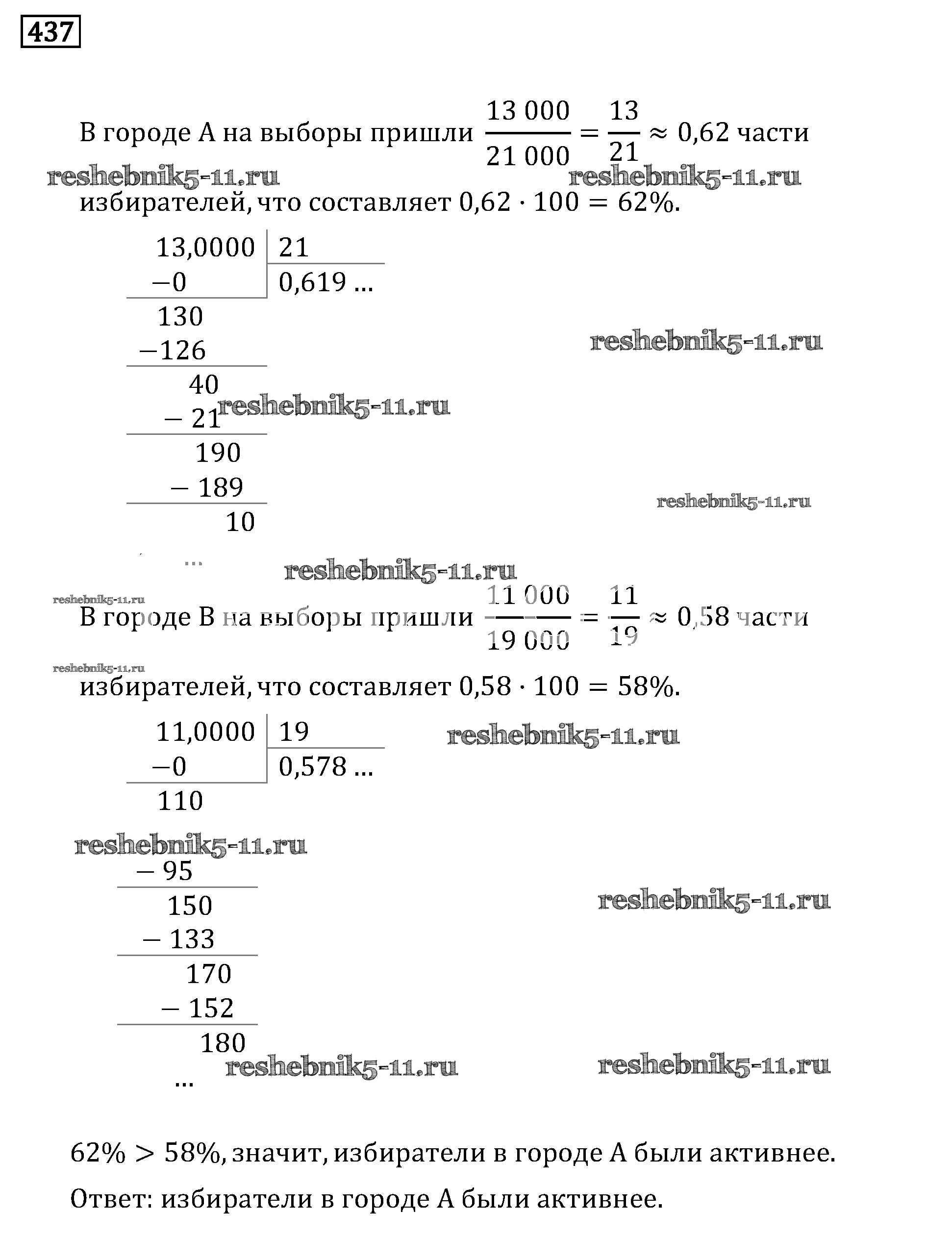 Готовая домашняя работа с ответами по Математике за 6 класс Бунимович, Кузнецова, Минаева Задачник Сферы Часть 1, 2 Просвещение 2014 ФГОС - Упражнения 437