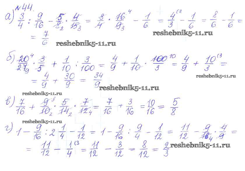 Готовая домашняя работа с ответами по Математике за 6 класс Бунимович, Кузнецова, Минаева Задачник Сферы Часть 1, 2 Просвещение 2014 ФГОС - Упражнения 44