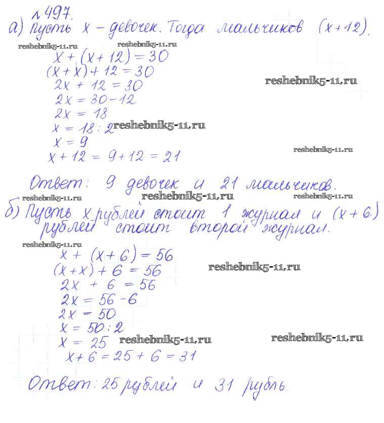 Готовая домашняя работа с ответами по Математике за 6 класс Бунимович, Кузнецова, Минаева Задачник Сферы Часть 1, 2 Просвещение 2014 ФГОС - Упражнения 497