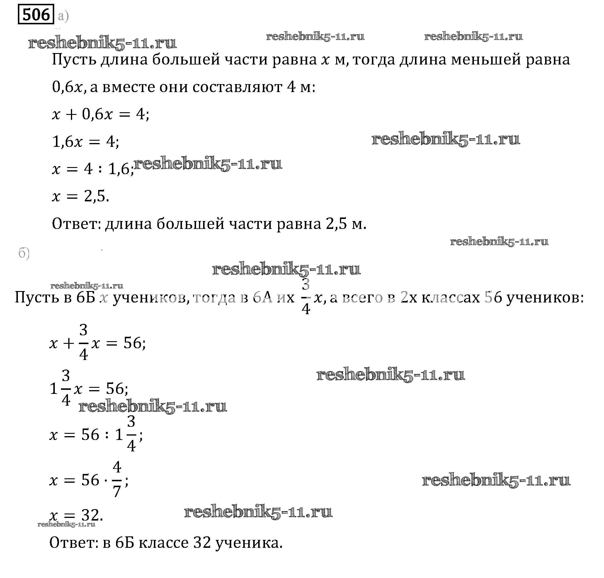 Готовая домашняя работа с ответами по Математике за 6 класс Бунимович, Кузнецова, Минаева Задачник Сферы Часть 1, 2 Просвещение 2014 ФГОС - Упражнения 506