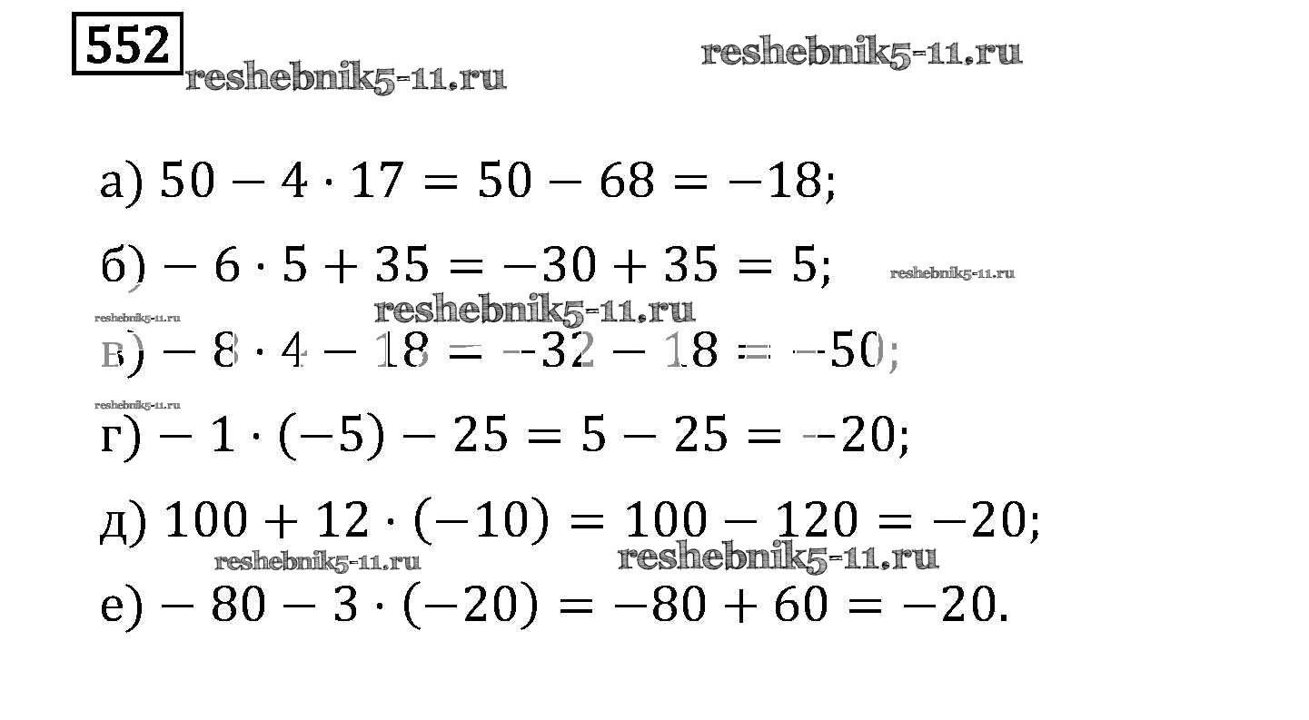 Готовая домашняя работа с ответами по Математике за 6 класс Бунимович, Кузнецова, Минаева Задачник Сферы Часть 1, 2 Просвещение 2014 ФГОС - Упражнения 552
