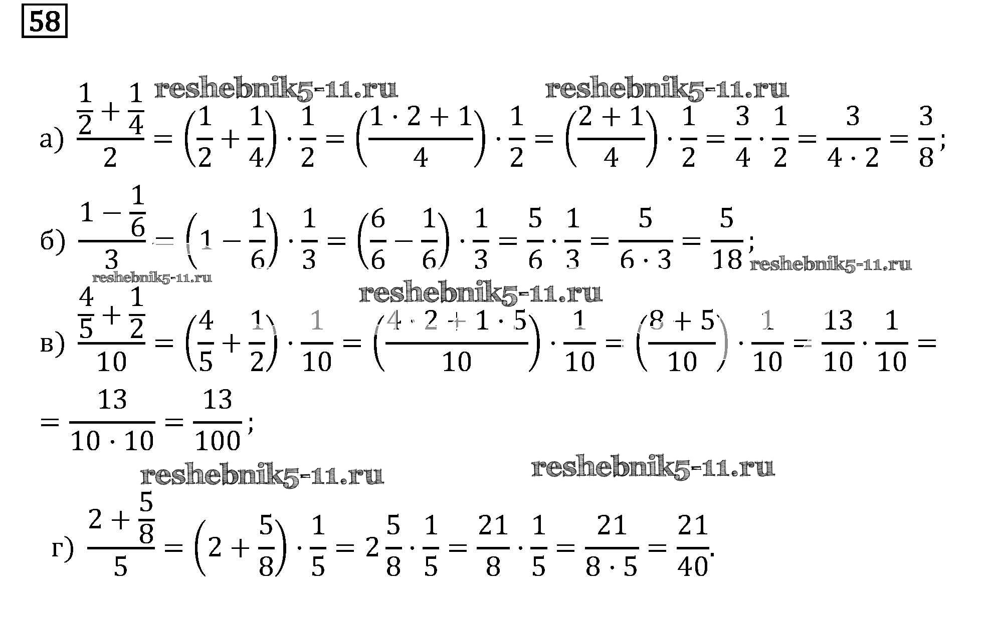 Готовая домашняя работа с ответами по Математике за 6 класс Бунимович, Кузнецова, Минаева Задачник Сферы Часть 1, 2 Просвещение 2014 ФГОС - Упражнения 58
