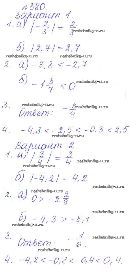 Готовая домашняя работа с ответами по Математике за 6 класс Бунимович, Кузнецова, Минаева Задачник Сферы Часть 1, 2 Просвещение 2014 ФГОС - Упражнения 580