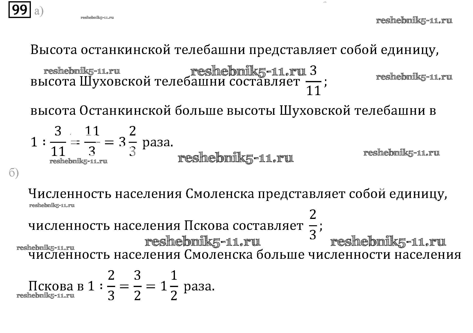 Готовая домашняя работа с ответами по Математике за 6 класс Бунимович, Кузнецова, Минаева Задачник Сферы Часть 1, 2 Просвещение 2014 ФГОС - Упражнения 99