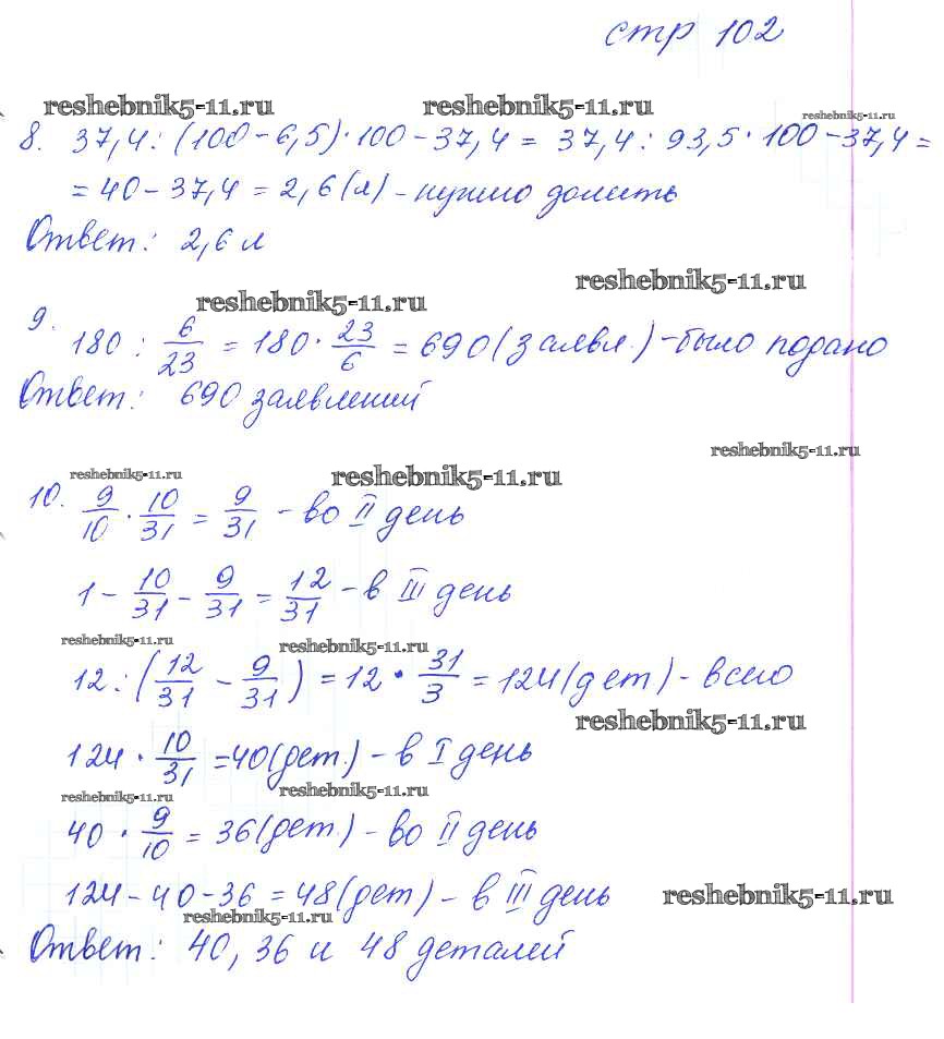 Готовая домашняя работа с ответами по Математике за 6 класс Ерина Рабочая тетрадь УМК Часть 1, 2 Экзамен 2020 ФГОС - Часть 1. Страницы 102