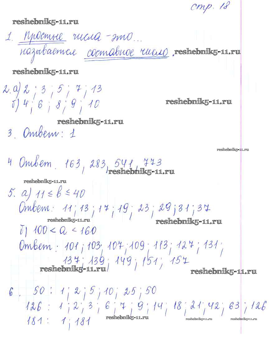 Готовая домашняя работа с ответами по Математике за 6 класс Ерина Рабочая тетрадь УМК Часть 1, 2 Экзамен 2020 ФГОС - Часть 1. Страницы 18