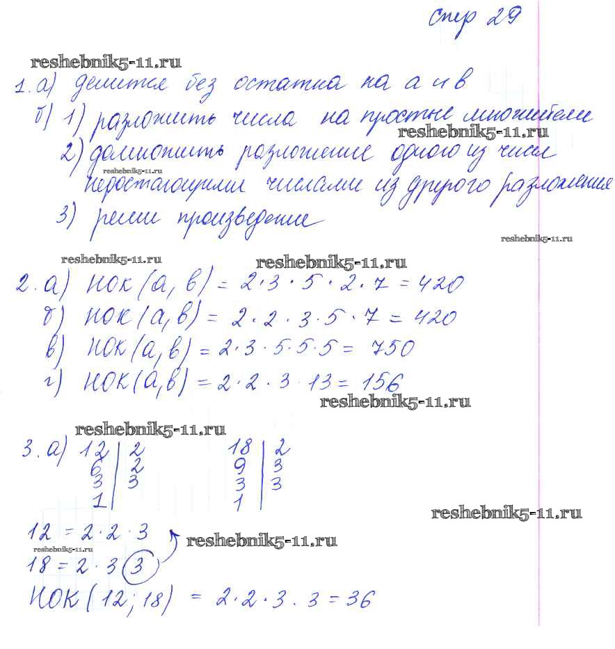 Готовая домашняя работа с ответами по Математике за 6 класс Ерина Рабочая тетрадь УМК Часть 1, 2 Экзамен 2020 ФГОС - Часть 1. Страницы 29