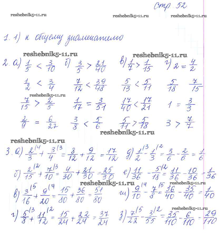 Готовая домашняя работа с ответами по Математике за 6 класс Ерина Рабочая тетрадь УМК Часть 1, 2 Экзамен 2020 ФГОС - Часть 1. Страницы 52