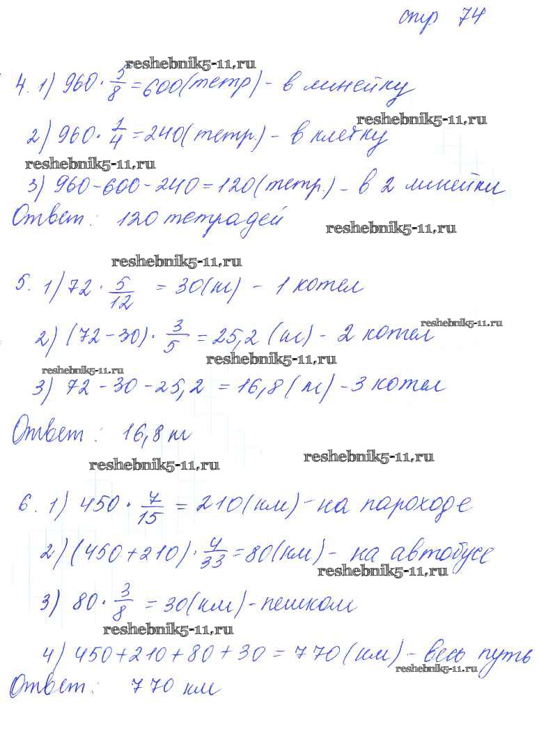 Готовая домашняя работа с ответами по Математике за 6 класс Ерина Рабочая тетрадь УМК Часть 1, 2 Экзамен 2020 ФГОС - Часть 1. Страницы 74