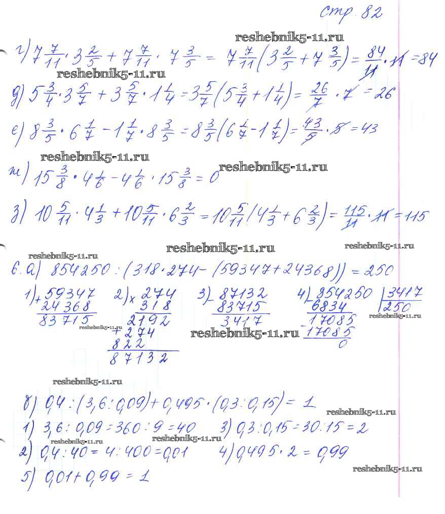Готовая домашняя работа с ответами по Математике за 6 класс Ерина Рабочая тетрадь УМК Часть 1, 2 Экзамен 2020 ФГОС - Часть 1. Страницы 82