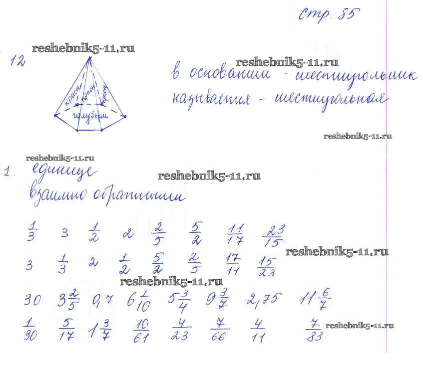 Готовая домашняя работа с ответами по Математике за 6 класс Ерина Рабочая тетрадь УМК Часть 1, 2 Экзамен 2020 ФГОС - Часть 1. Страницы 85