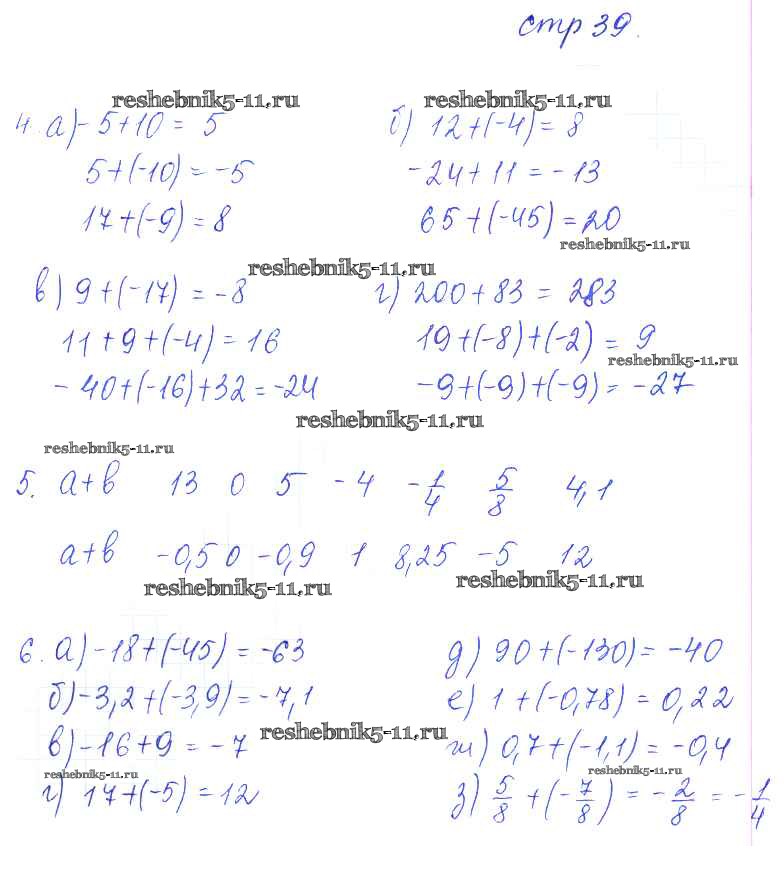 Готовая домашняя работа с ответами по Математике за 6 класс Ерина Рабочая тетрадь УМК Часть 1, 2 Экзамен 2020 ФГОС - Часть 2. Страницы 39