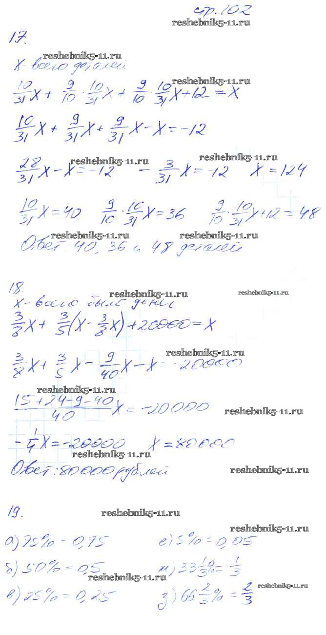 Готовая домашняя работа с ответами по Математике за 6 класс Ерина Рабочая тетрадь УМК Часть 1, 2 Экзамен 2014 ФГОС - Часть 1. Страницы 102