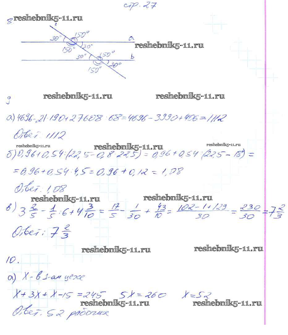 Готовая домашняя работа с ответами по Математике за 6 класс Ерина Рабочая тетрадь УМК Часть 1, 2 Экзамен 2014 ФГОС - Часть 1. Страницы 27