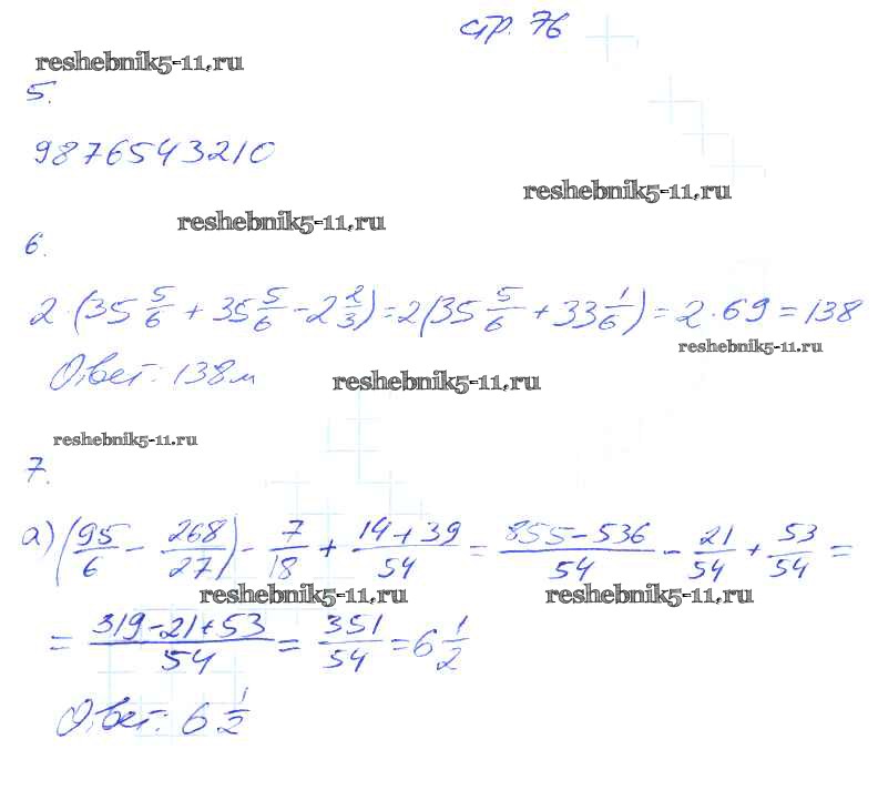 Готовая домашняя работа с ответами по Математике за 6 класс Ерина Рабочая тетрадь УМК Часть 1, 2 Экзамен 2014 ФГОС - Часть 1. Страницы 76