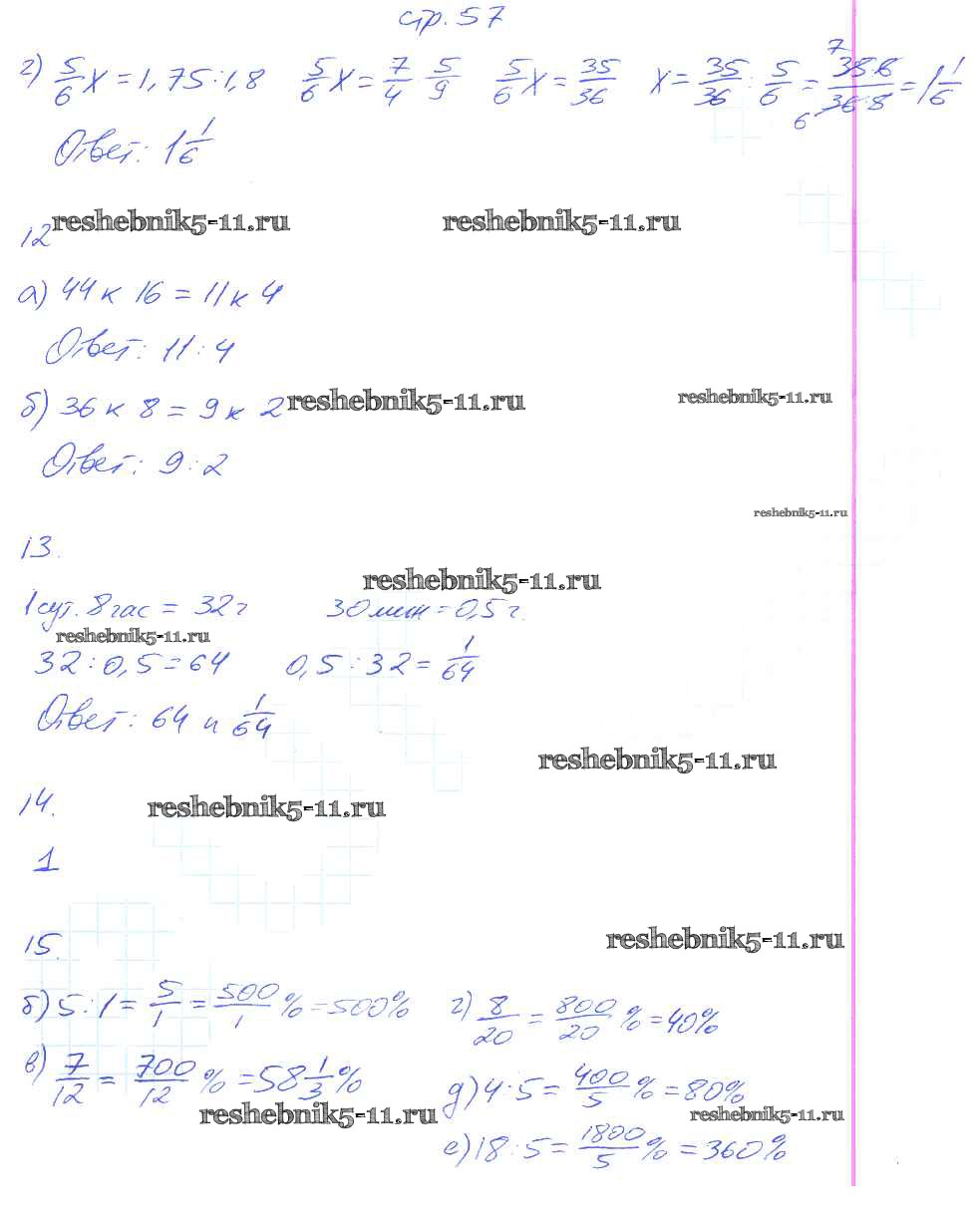 Готовая домашняя работа с ответами по Математике за 6 класс Ерина Рабочая тетрадь УМК Часть 1, 2 Экзамен 2014 ФГОС - Часть 2. Страницы 57