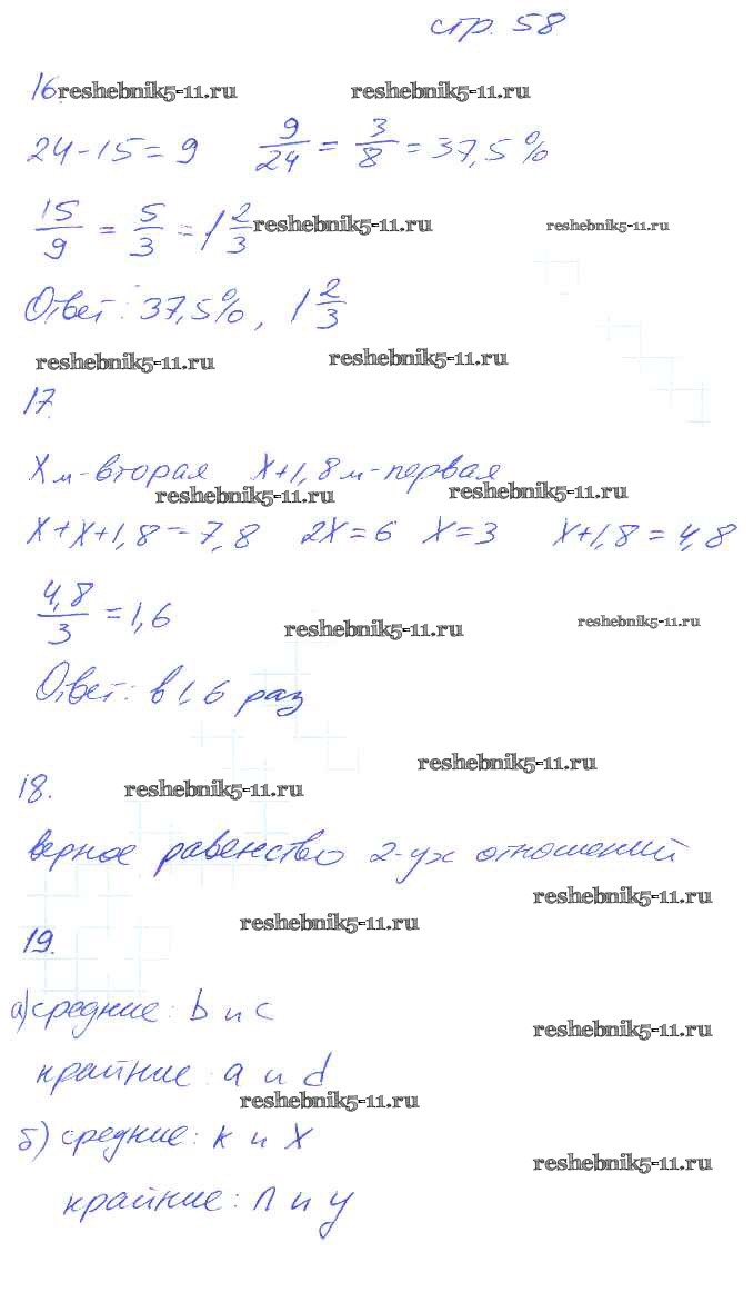 Готовая домашняя работа с ответами по Математике за 6 класс Ерина Рабочая тетрадь УМК Часть 1, 2 Экзамен 2014 ФГОС - Часть 2. Страницы 58