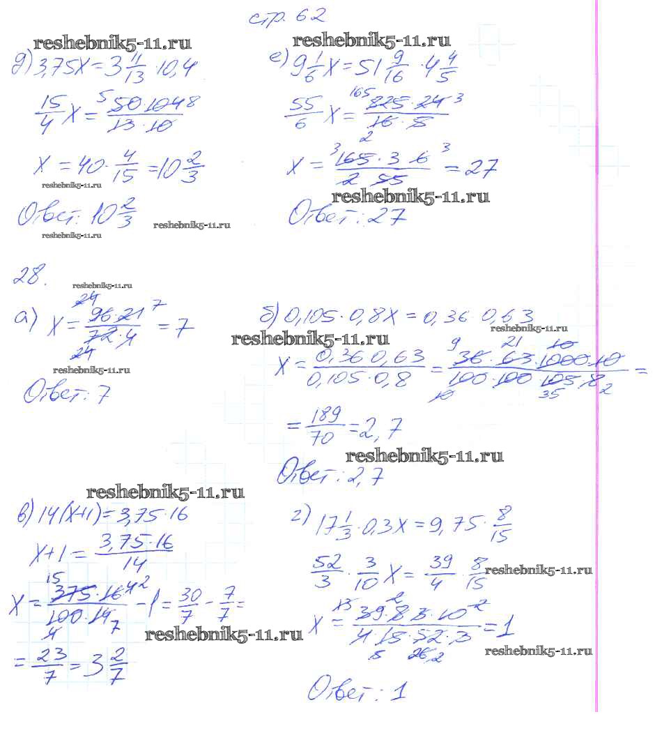 Готовая домашняя работа с ответами по Математике за 6 класс Ерина Рабочая тетрадь УМК Часть 1, 2 Экзамен 2014 ФГОС - Часть 2. Страницы 62