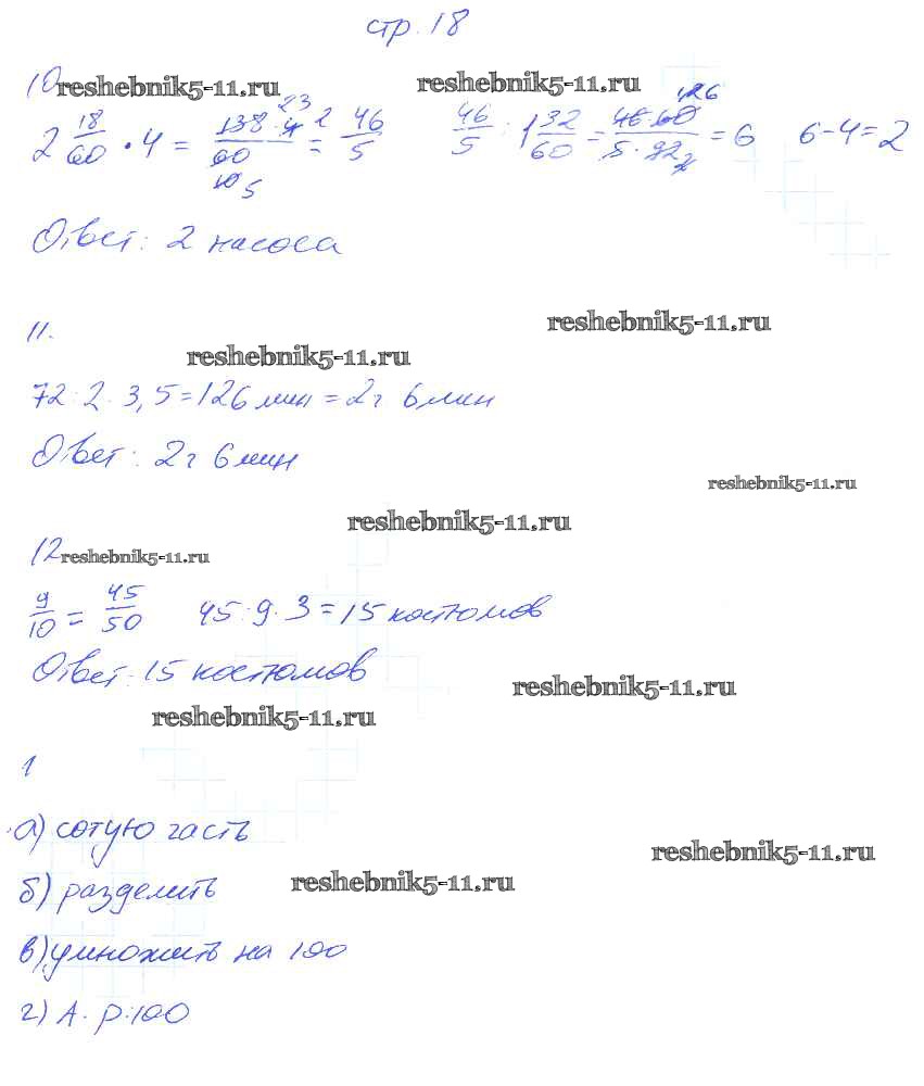 Готовая домашняя работа с ответами по Математике за 6 класс Ерина Рабочая тетрадь УМК Часть 1, 2 Экзамен 2017 ФГОС - Часть 1. Страницы 18