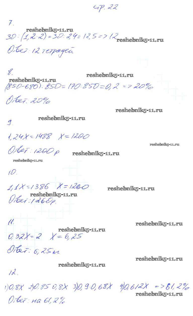 Готовая домашняя работа с ответами по Математике за 6 класс Ерина Рабочая тетрадь УМК Часть 1, 2 Экзамен 2017 ФГОС - Часть 1. Страницы 22