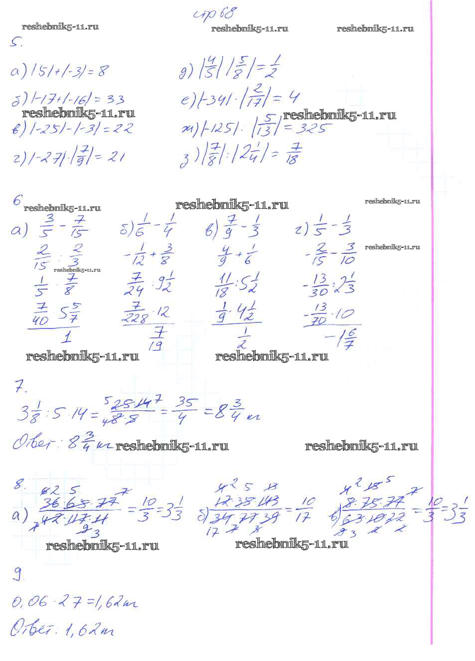 Готовая домашняя работа с ответами по Математике за 6 класс Ерина Рабочая тетрадь УМК Часть 1, 2 Экзамен 2017 ФГОС - Часть 1. Страницы 68