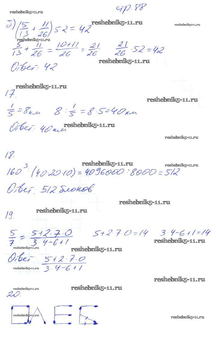 Готовая домашняя работа с ответами по Математике за 6 класс Ерина Рабочая тетрадь УМК Часть 1, 2 Экзамен 2017 ФГОС - Часть 1. Страницы 88