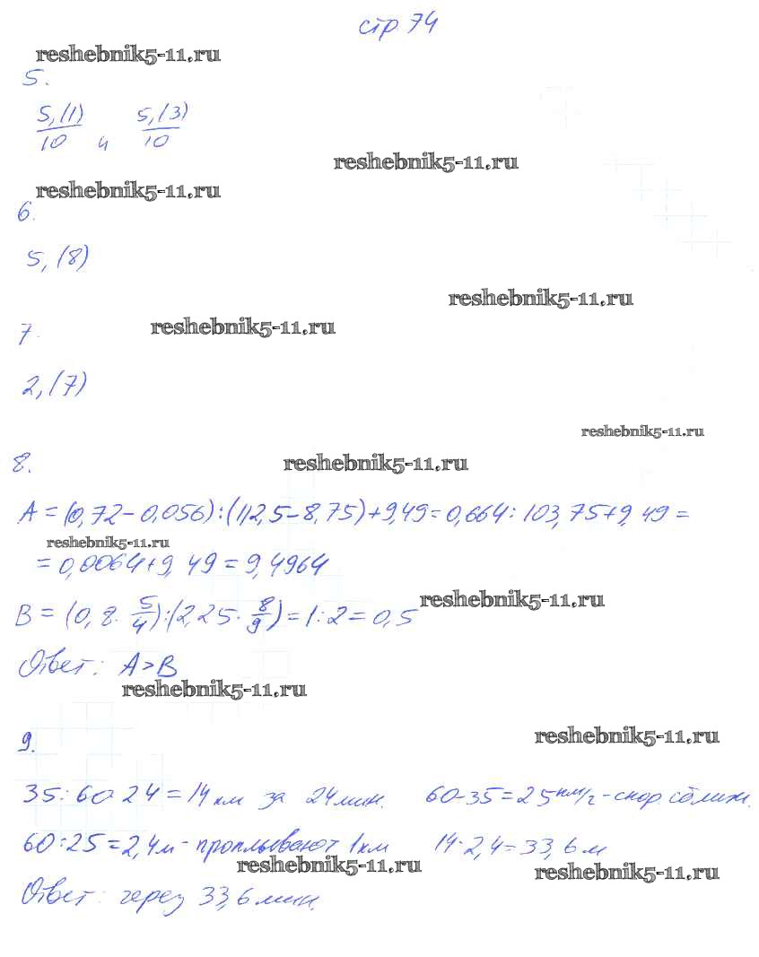 Готовая домашняя работа с ответами по Математике за 6 класс Ерина Рабочая тетрадь УМК Часть 1, 2 Экзамен 2017 ФГОС - Часть 2. Страницы 74