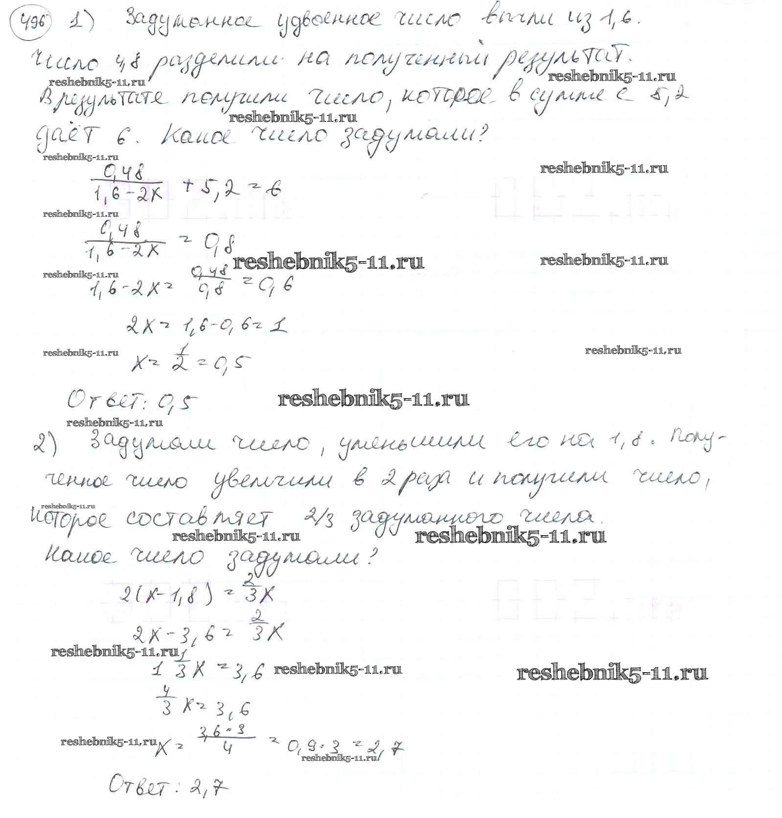 Готовая домашняя работа с ответами по Математике за 6 класс Петерсон, Дорофеев Учебник Учусь учиться Часть 1, 2, 3 Ювента 2014 ФГОС - Часть 2. Упражнения 496