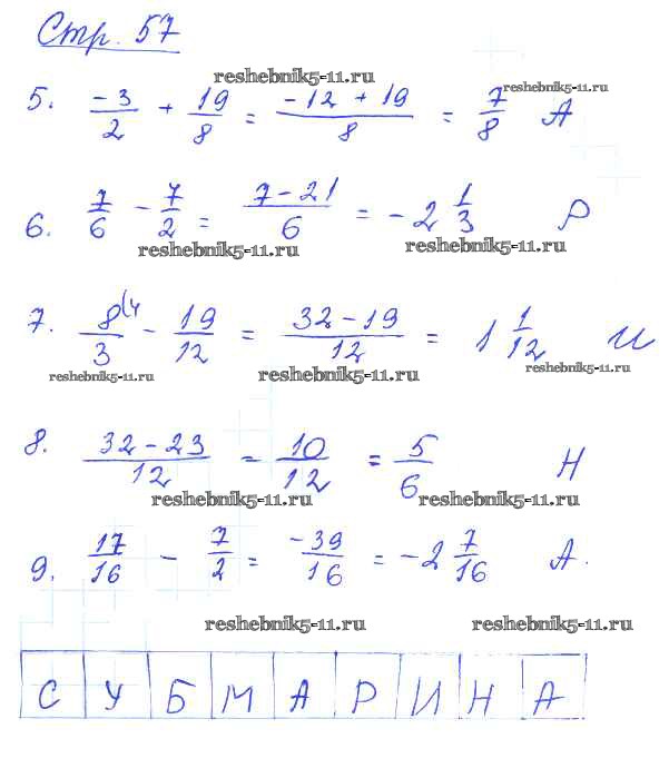 Готовая домашняя работа с ответами по Математике за 6 класс Зубарева Рабочая тетрадь Часть 1, 2 Мнемозина 2016 ФГОС - Часть 1. Страницы 57