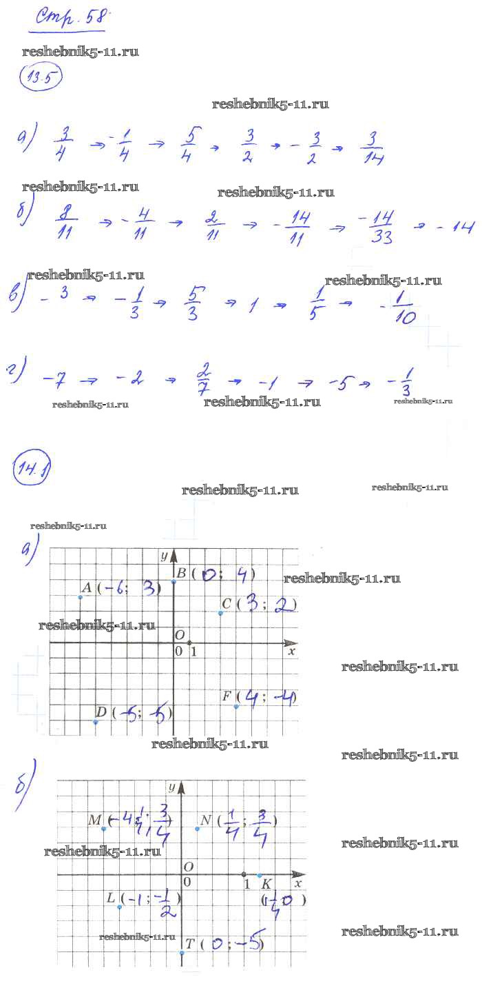 Готовая домашняя работа с ответами по Математике за 6 класс Зубарева Рабочая тетрадь Часть 1, 2 Мнемозина 2016 ФГОС - Часть 1. Страницы 58