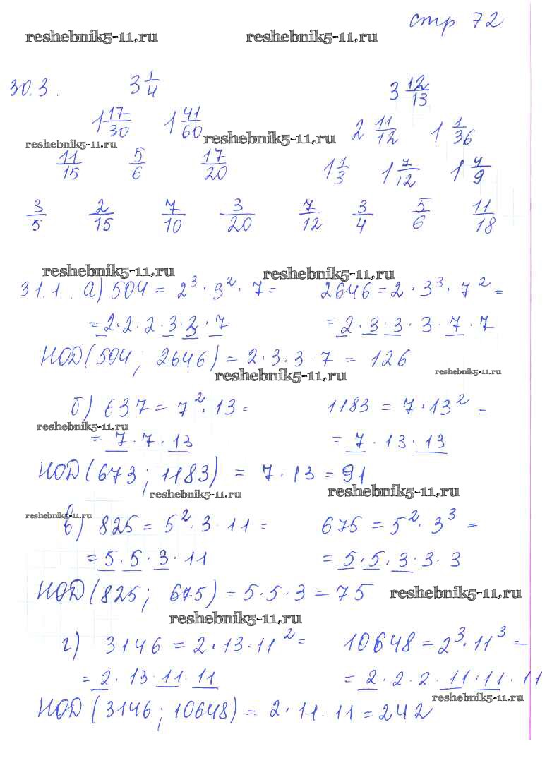 Готовая домашняя работа с ответами по Математике за 6 класс Зубарева Рабочая тетрадь Часть 1, 2 Мнемозина 2016 ФГОС - Часть 1. Страницы 72