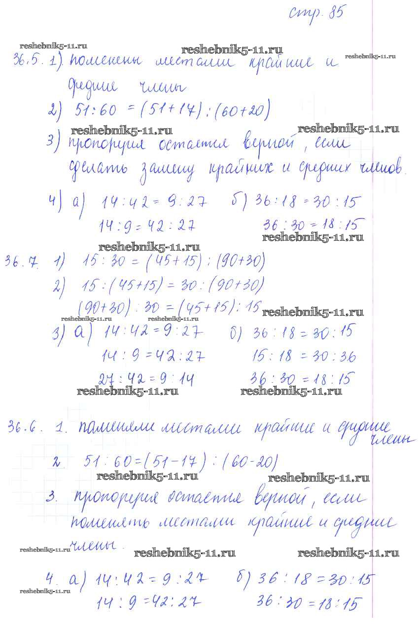 Готовая домашняя работа с ответами по Математике за 6 класс Зубарева Рабочая тетрадь Часть 1, 2 Мнемозина 2016 ФГОС - Часть 1. Страницы 85
