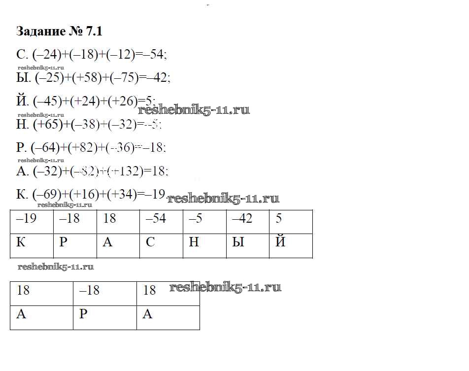 Готовая домашняя работа с ответами по Математике за 6 класс Зубарева Рабочая тетрадь Часть 1, 2 Мнемозина 2016 ФГОС - §7. Алгебраическая сумма и ее свойства 1