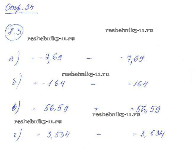 Готовая домашняя работа с ответами по Математике за 6 класс Зубарева Рабочая тетрадь Часть 1, 2 Мнемозина 2016 ФГОС - §8. Правило вычисления значения алгебраической суммы двух чисел 3