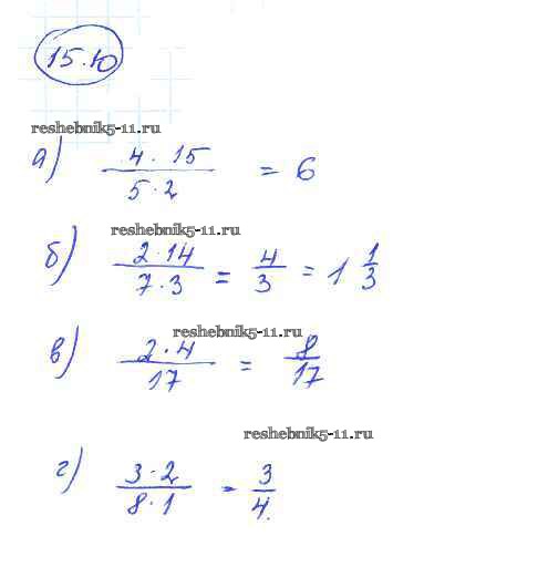 Готовая домашняя работа с ответами по Математике за 6 класс Зубарева Рабочая тетрадь Часть 1, 2 Мнемозина 2016 ФГОС - §15. Умножение и деление обыкновенных дробей 10
